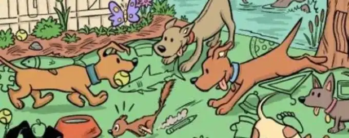 Spróbuj rozwiązać zabawną zagadkę – wśród psów bawiących się na polanie zgubił się magnes, który będziemy musieli szybko odnaleźć.