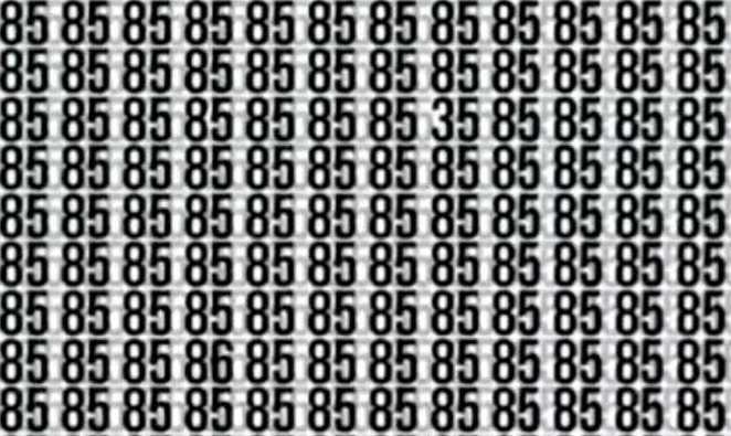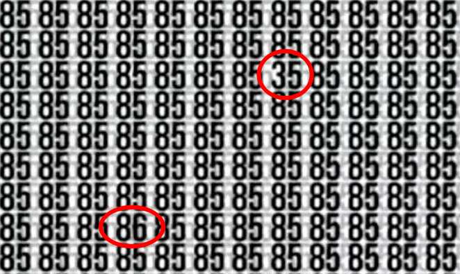W następnej zagadce musisz znaleźć dwie ukryte liczby – 86 i 35 – wśród dużej liczby liczb 85, pisze jagranjosh. Nie będzie łatwo zauważyć, gdzie ukryte są liczby, które różnią się od wszystkich innych.