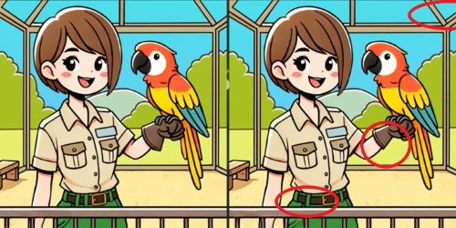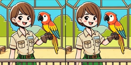 Zdjęcia przedstawiają dziewczynę i papugę. Na pierwszy rzut oka zdjęcia wydają się identyczne, ale ukryte są na nich trzy różnice. Twoim zadaniem jest znalezienie ich w ciągu zaledwie 17 sekund.