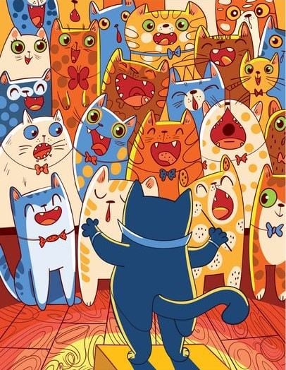 Gdzieś wśród śpiewających z radości kotów ukrywa się ryba. Jeśli uda ci się znaleźć ukrytą rybę, znajdziesz się w grupie 3% uważnych osób.