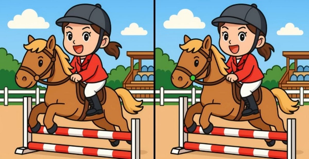Przed tobą znajdują się dwa zdjęcia dziewczyny jadącej na koniu. Na pierwszy rzut oka wyglądają dokładnie tak samo, ale są między nimi trzy różnice.
