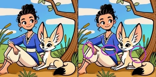 Przed tobą znajdują się dwa obrazki przedstawiające dziewczynę i lisa. Na pierwszy rzut oka mogą wydawać się dokładnie takie same, ale w rzeczywistości istnieją między nimi trzy małe różnice.