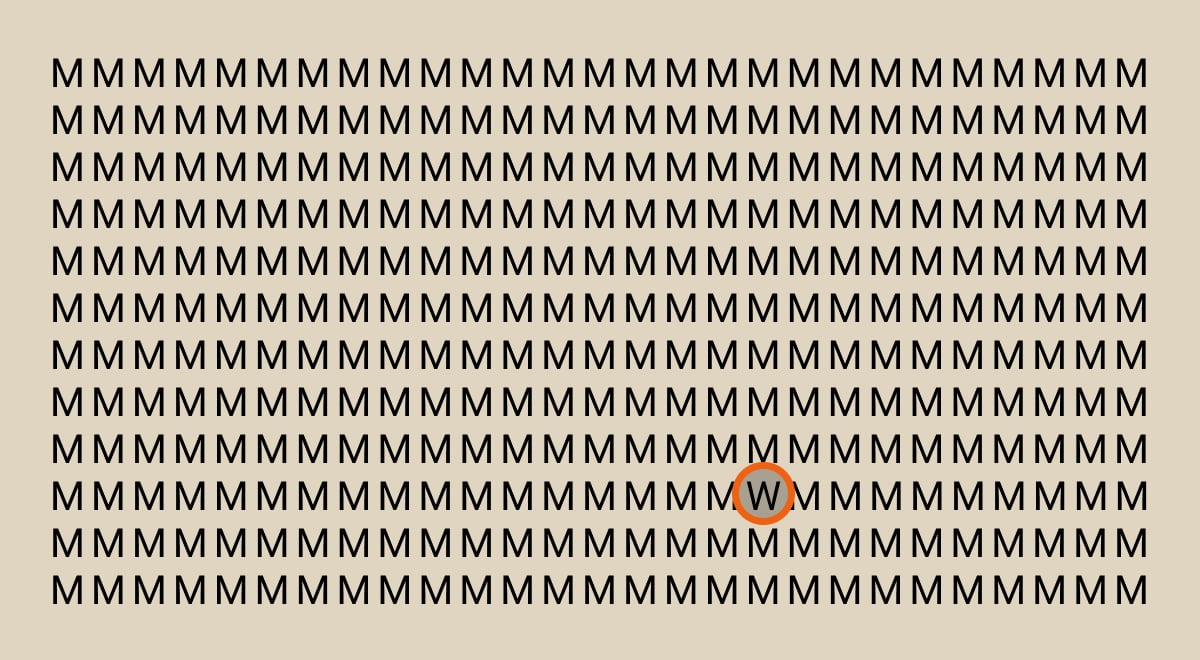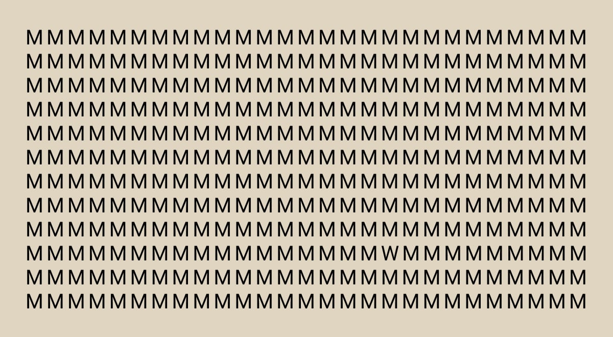 W następnej zagadce będziesz musiał znaleźć literę W wśród dużej liczby liter M. Aby znaleźć tę literę, będziesz musiał zebrać całą swoją uwagę, ponieważ zagadka jest bardzo dobrze ukryta.