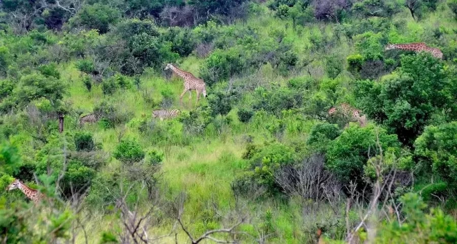 Widzimy grupę zwierząt wędrujących wśród zielonych drzew i krzewów. Na obrazku znajduje się pewna liczba żyraf i zebr. Jednak policzenie ich dokładnej liczby nie jest łatwym zadaniem. W końcu niektóre zwierzęta są wyraźnie widoczne, ale jednocześnie niektóre z nich mogą być ukryte przed naszymi oczami.
