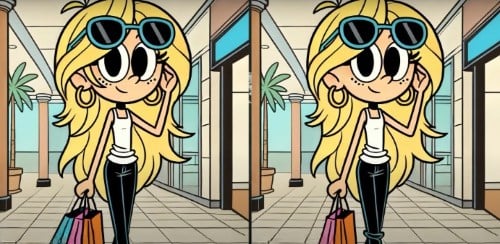 Gotowy do sprawdzenia się? Masz przed sobą dwa zdjęcia dziewczyny trzymającej torby. Wydają się być dokładnie takie same, ale to tylko złudzenie – są między nimi trzy różnice.